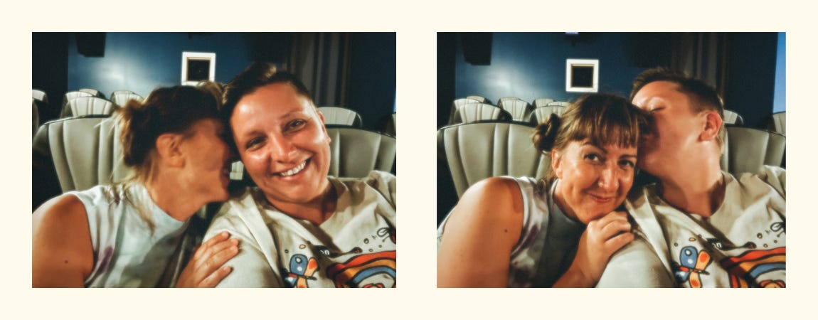 As the credits rolled, we walked out into the humid July evening, with the kind of air that makes you feel like you’ve been soft-boiled. We stood at the curb and hugged longingly. Our relationship was brand new, but our friendship was years old and pandemic-bonded. Our connection radiated: "Maybe we’ll stay alive a little longer if we hold on to each other.” We didn’t directly talk about suicide that night, but we kind of did—through hand squeezes and weepy eyes whose heavy silences expressed a shared hope that we might keep each other anchored.
